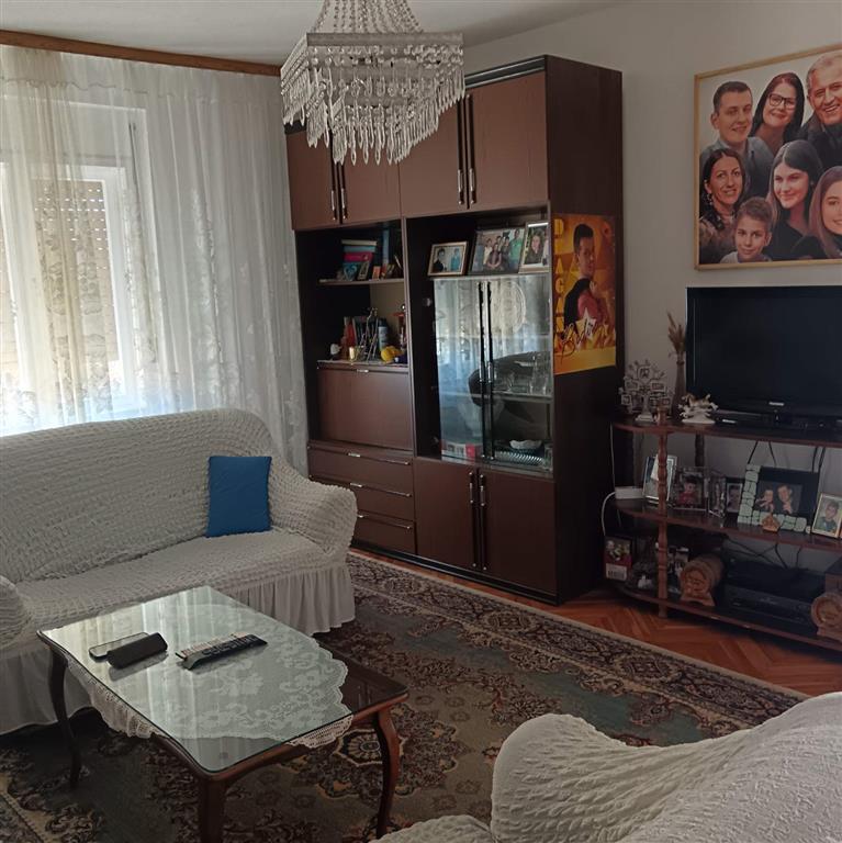 Ker. Prodaje se nekternina od 135 m2, čvrsta gradnja, gasno grejanje, kuća ima dva ulaza, stolarija drvena sa roletnama, grv, grk, trofazna struja, parket, pločice, tri sobe razdvojene, hodnik, kuhinja sa trpezarijom, kupatilo, ostavom, plus u suterenu 2 s stan, na placu garaža od 25m2, pomoćno objekti, površina placa 600 m2.
